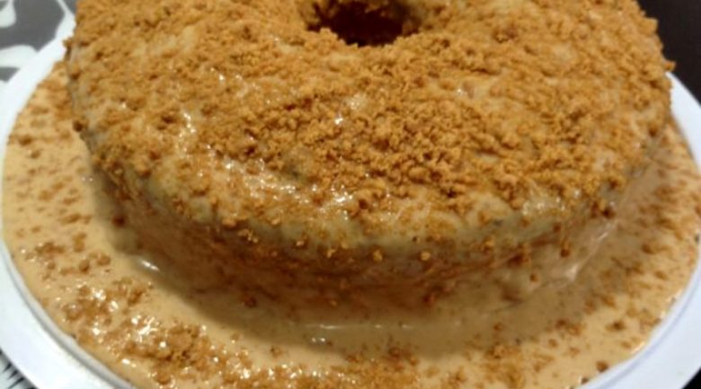 - Retire do fogo e despeje sobre o bolo