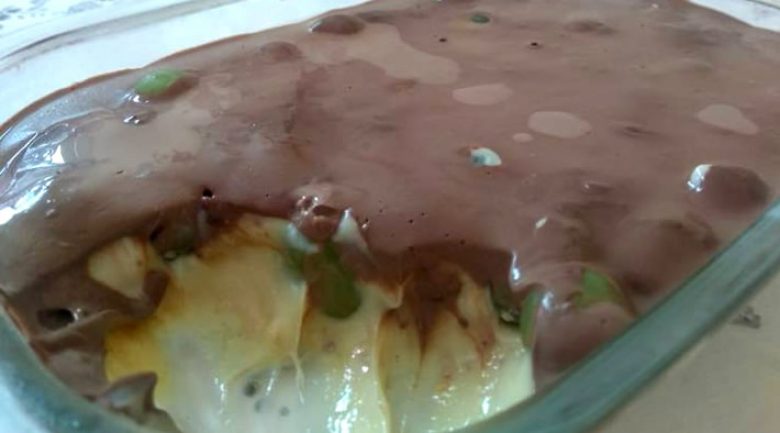 - Derreta o chocolate no micro-ondas e adicione o creme de leite