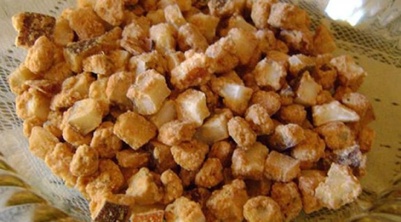 - Retire do fogo e espalhe em uma forma, deixe esfriar e separe os pedaços que grudarem