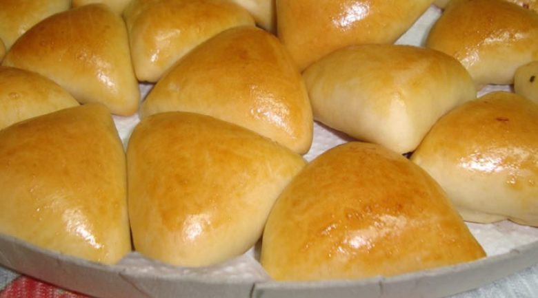 - Após abra as bolinhas coloque o recheio cru, una as três pontas da massa formando um triângulo