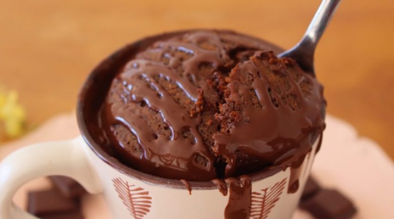 - Em seguida, na caneca mesmo, misture o ovo, o óleo de coco, o açúcar mascavo, o chocolate em pó, a canela e o mel