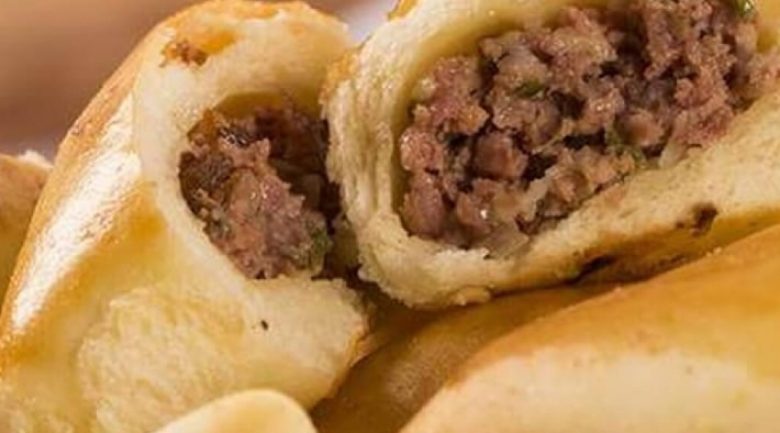 - Abra as bolinhas com o rolo, coloque a mistura de recheio com uma colher e feche em forma de triângulo