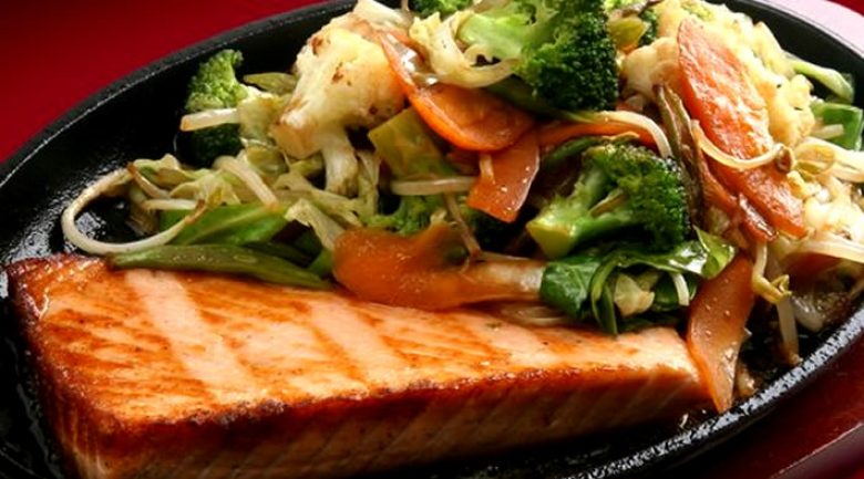 - Coloque um fio de azeite e doure o salmão dos dois lados com uma pitada de sal