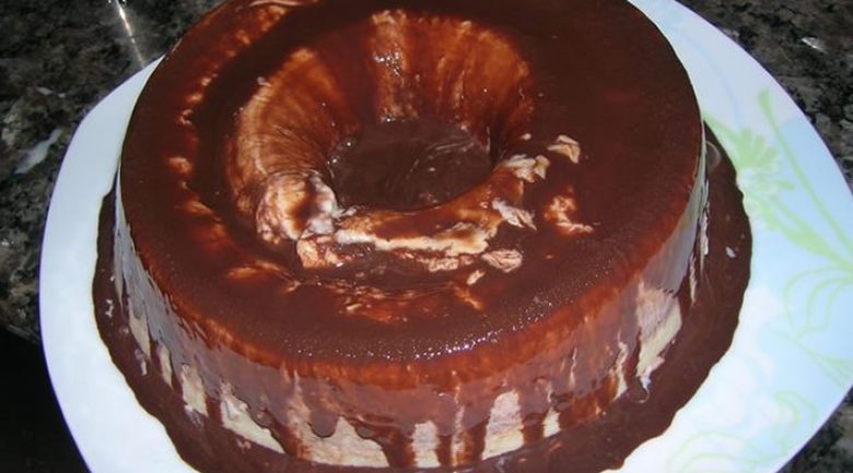 - Coloque numa forma de pudim com a calda e leve ao congelador